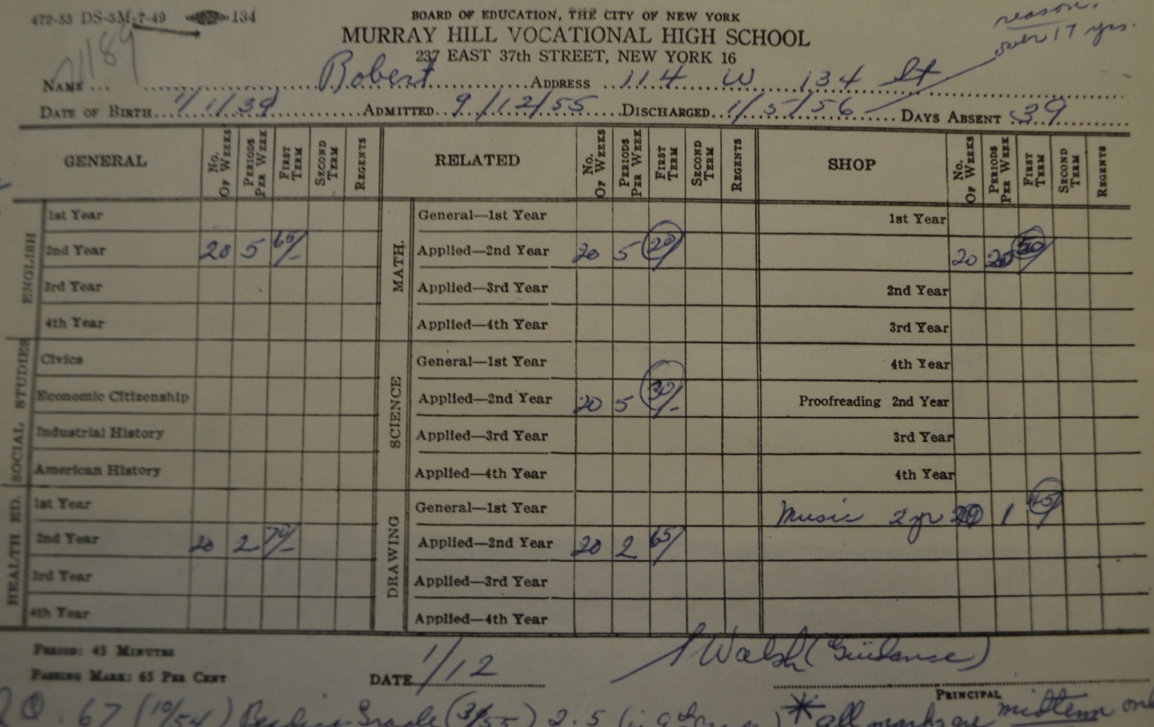 In September 1955, Robert and his mother moved back to Manhattan (they had actually lived there for a year before they had moved to the Bronx). Their new home was 112 West 134th Street in the heart of Harlem, a neighborhood known for “grinding poverty, abject living conditions and rampant crime…” Just like in the Bronx, Robert was a rebel. His mom didn’t approve of his friends and her opinion was that her son needed iron discipline to keep him straight. She wasn’t wrong. Twice she marched him into the 30th and 32nd police stations asking for help in how to deal with Robert who was staying up late, occasionally deserting the home and refusing to work.