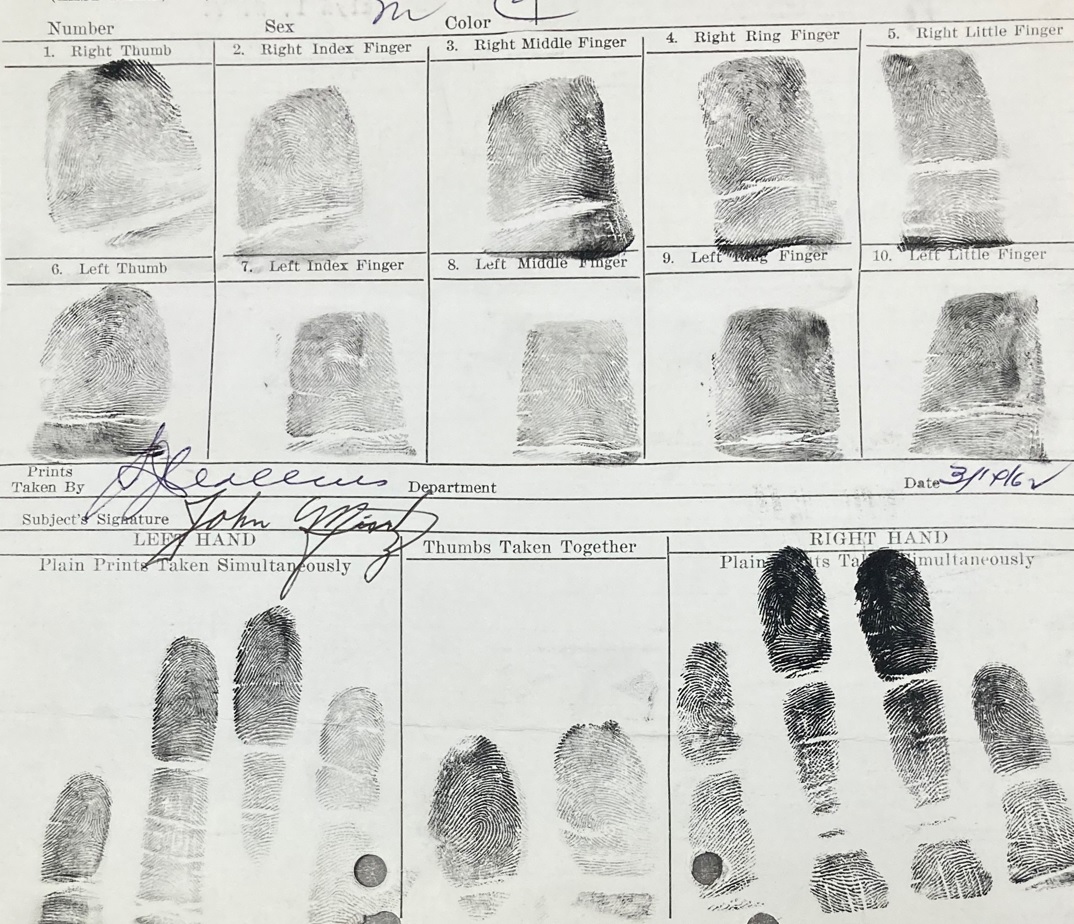 • On March 7, 1959, while waiting for disposition on the pocketbook snatch, John was arrested again. This time it was for threatening a 12-year-old with a razor and taking $3.98 cash from him and a pair of swim fins.