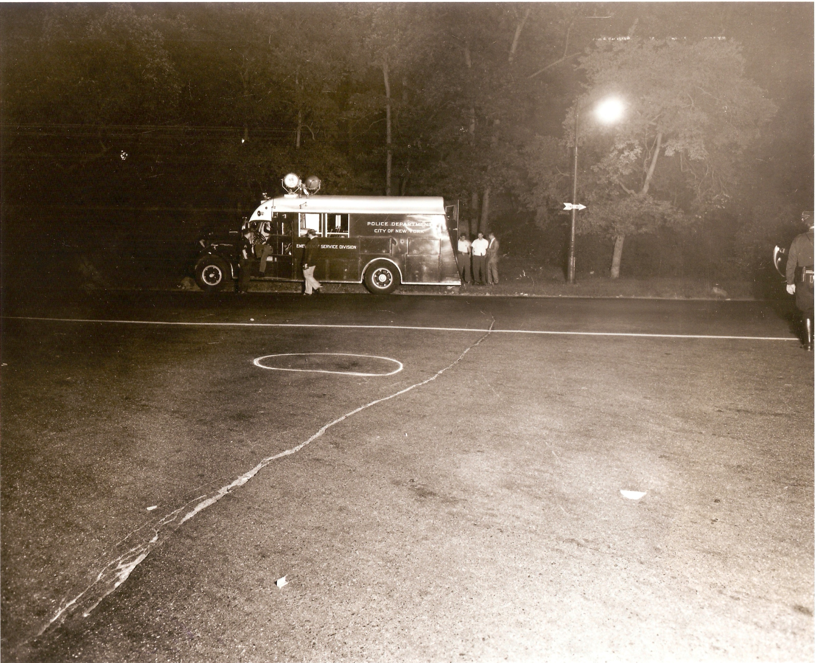 Crime Scene where Milton Graniela, a member of the Sinners, a Manhattan youth gang from the 1950s, was shot and killed by the police.